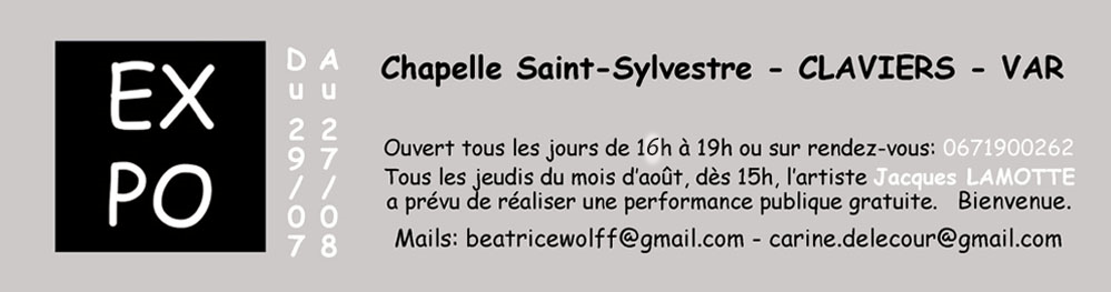 Bienvenue ce vendredi 28 juillet 2023 dès 18H30 à la Chapelle Saint-Sylvestre de CLAVIERS, pour le vernissage de l’artiste peintre Jacques LAMOTTE.